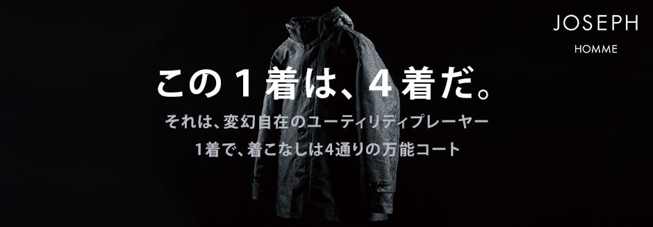 JOSEPH HOMME(ジョゼフ オム)のブランドコンセプトはラグジュアリーなエッセンスが加味された、コンテンポラリーでタイムレスなワードローブを世界に発信する英国ブランド。ファッションはもちろん、グルメ、インテリアに精通し、自分自身を豊かに演出できる人に向けて、洗練された高感度な大人服・ライフスタイルを提案するショップです。