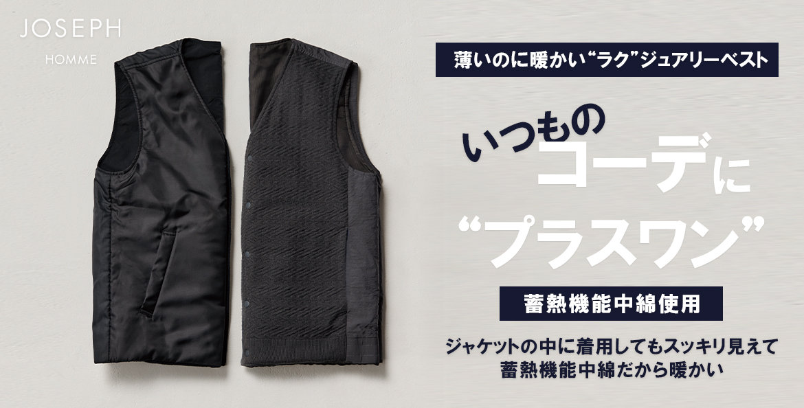 JOSEPH HOMME(ジョゼフ オム)のブランドコンセプトはラグジュアリーなエッセンスが加味された、コンテンポラリーでタイムレスなワードローブを世界に発信する英国ブランド。ファッションはもちろん、グルメ、インテリアに精通し、自分自身を豊かに演出できる人に向けて、洗練された高感度な大人服・ライフスタイルを提案するショップです。