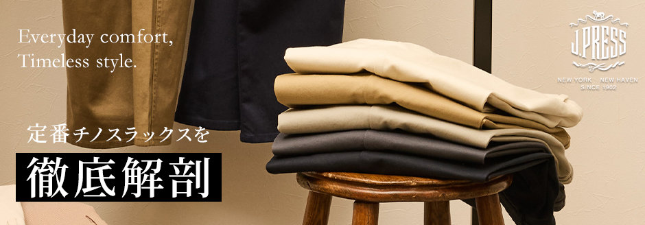J.PRESSのスピリッツに基づく物づくりの姿勢は、時代が変わろうとも、単なる時代のトレンドではなく、時代を超越した価値を生み出すことに焦点を当てています。J.PRESSはファッションや生活を単なる「変化するもの」として捉えるのではなく、むしろ「完成させるもの」という観点からアプローチし、伝統と歴史を尊重しながらも、時代に合った感性を取り入れ、上質で品格あるライフスタイルを提案し続けています。